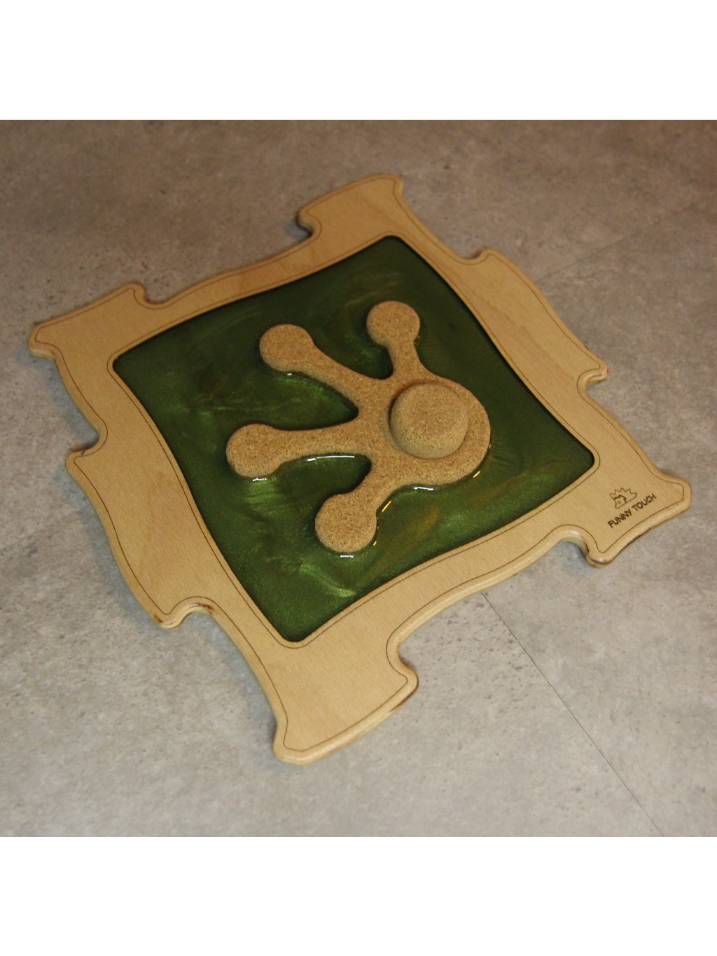 Senzomotorický dílek Stopa žáby vybízí děti k pohybu, objevování a hravému učení. Dílek o rozměru 24 x 24 cm je vyroben z kvalitního přírodního dřeva a korku a nabízí příjemný hmatový zážitek při každém došlapu. Díky odolnému zpracování je vhodný pro každodenní používání doma i v kolektivních prostorách.