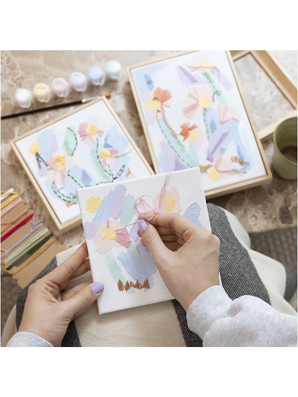 Tato kreativní sada je dokonalou volbou pro všechny, kteří touží po chvíli klidu, prostor pro sebe a možnost ponořit se do tvoření, které uklidňuje a současně inspiruje. Kombinuje akrylovou malbu a výšivku, díky čemuž vznikají obrazy s krásnou hloubkou, strukturou a osobitým rukopisem.