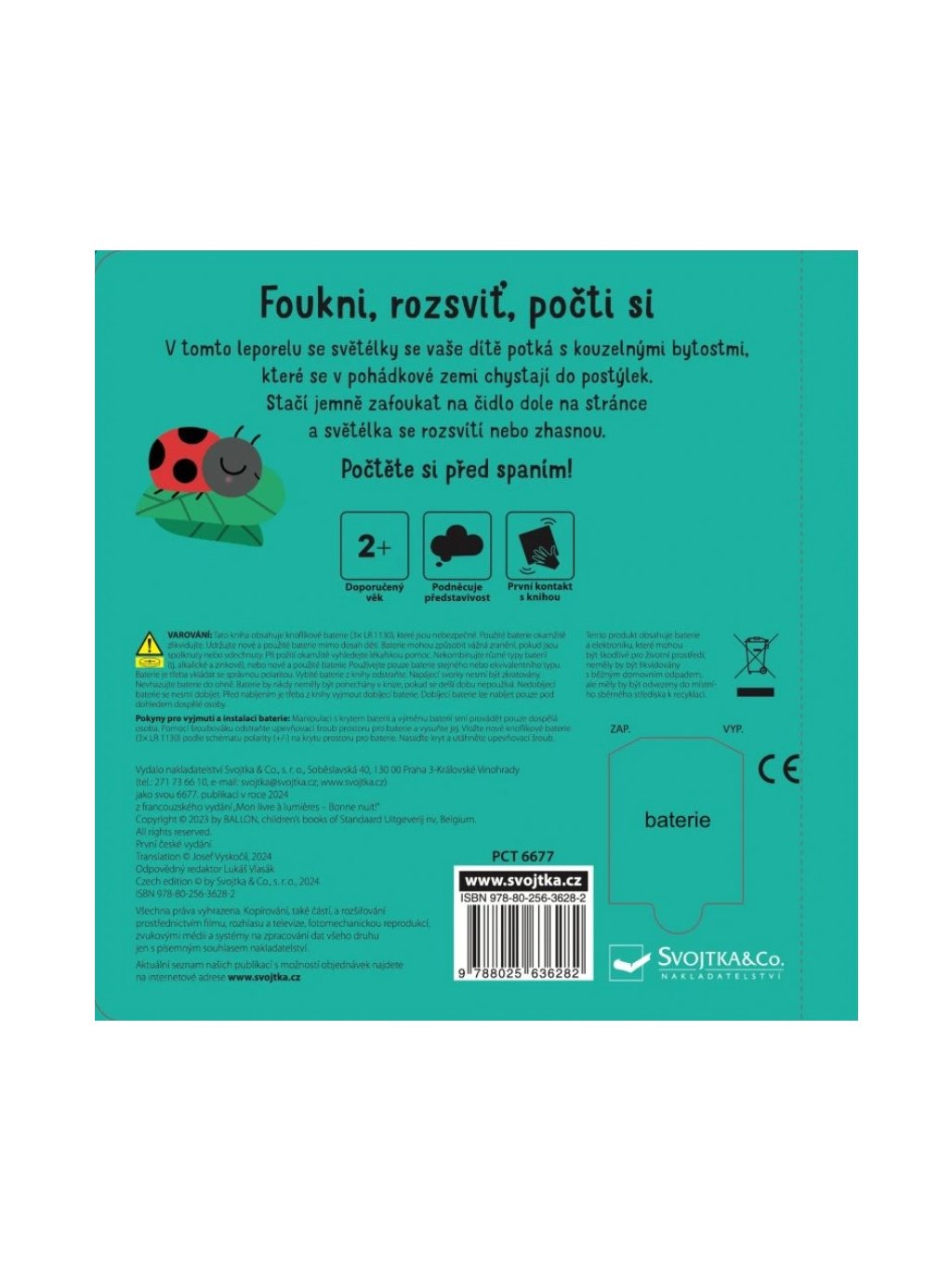 Pro kouzelné bytosti nastává čas ulehnout do postýlek. Tato knížka propojuje čtení s interaktivní hrou - stačí fouknout na stránky a rozsvítí se malá světélka. Děti se tak aktivně zapojují do příběhu, zatímco vy si spolu užíváte společné chvíle před spaním.