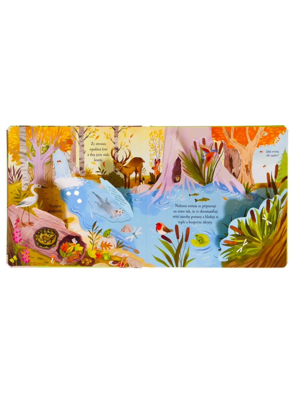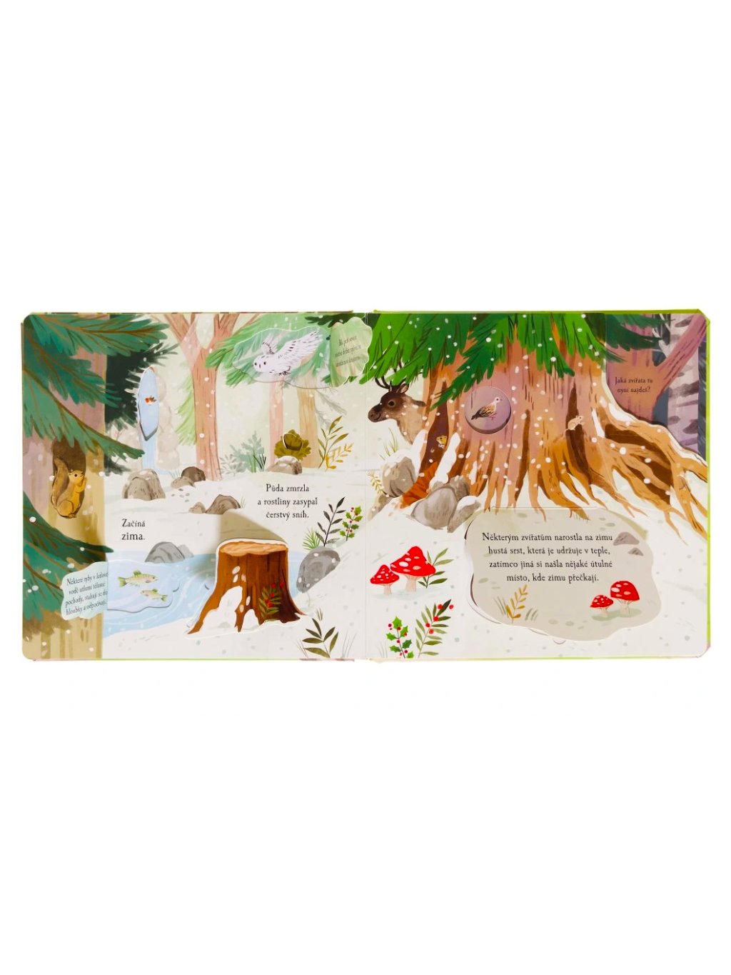 Otevřete tuto knížku a vydejte se na procházku po zeleném království, kde spolu žijí rostliny i zvířata. Podívejte se pod listy, do skulin a dutin stromů, nahlédněte do nor i pod kameny. Zjistěte, kdo se ukrývá v různých koutech lesa. Díky odklápěcím okénkům se děti mohou samy stát malými badateli a s radostí objevovat, jak pestrý život v lese je.