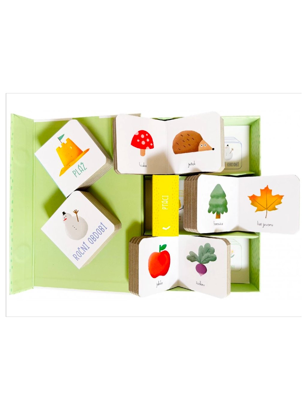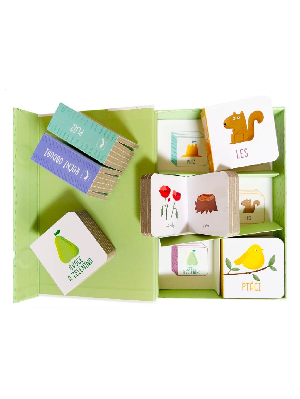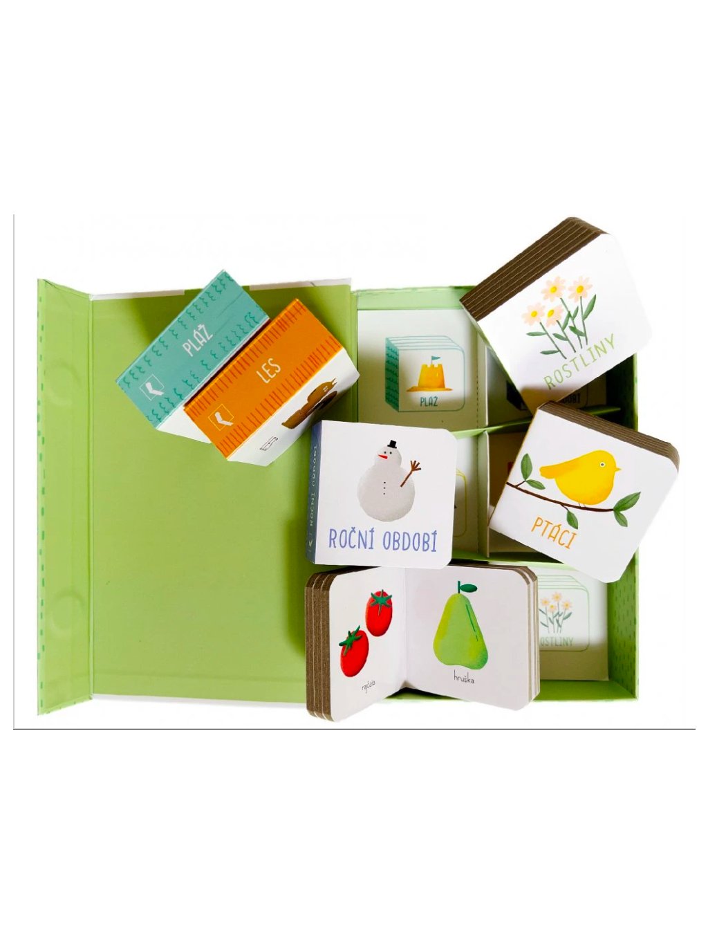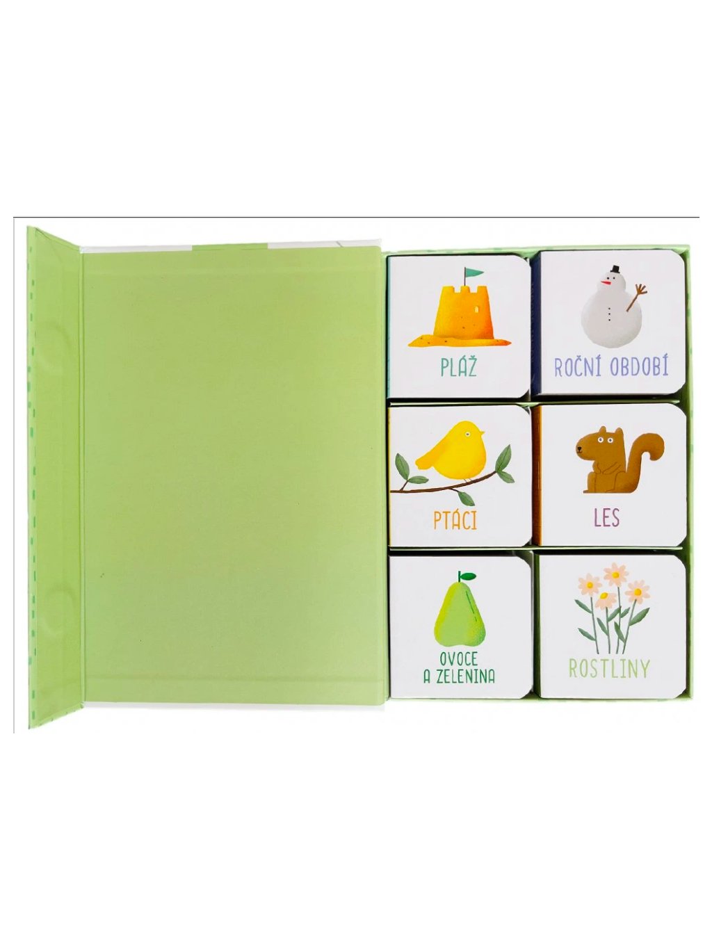Šest miniknížek, které pomohou malým dětem naučit se základní slova z oblasti přírody, zvířat i ovoce a zeleniny.