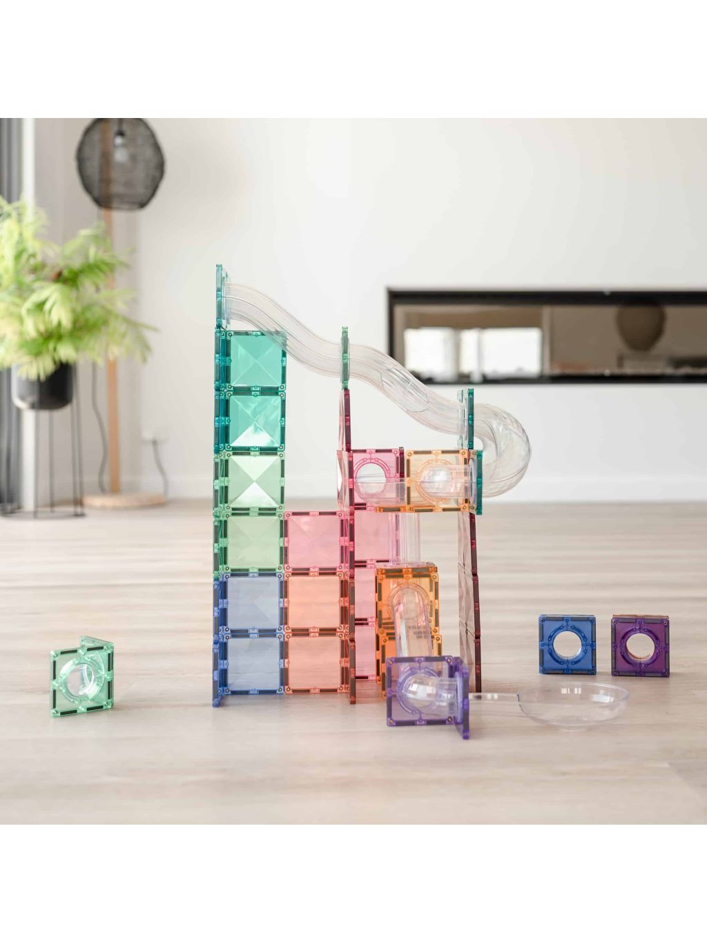 Velká sada plná hravosti, která děti zabaví na dlouhé hodiny a přitom je nenápadně učí. Obsahuje 106 krásně zpracovaných dílků v jemných pastelových barvách, včetně dřevěných kuliček, speciálních průhledných trubek a efektových dílů pro ještě větší zábavu.
