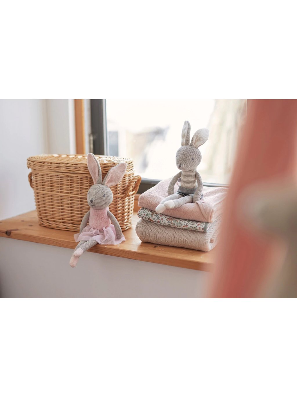 Roztomilý králíček v růžových šatičkách je vyroben z měkké bavlněné pleteniny, takže je ideální jako mazlíček do postýlky pro klidné usínání. Stane se oblíbeným společníkem při dětských hrách a zároveň hezkou dekorací do pokojíčku.