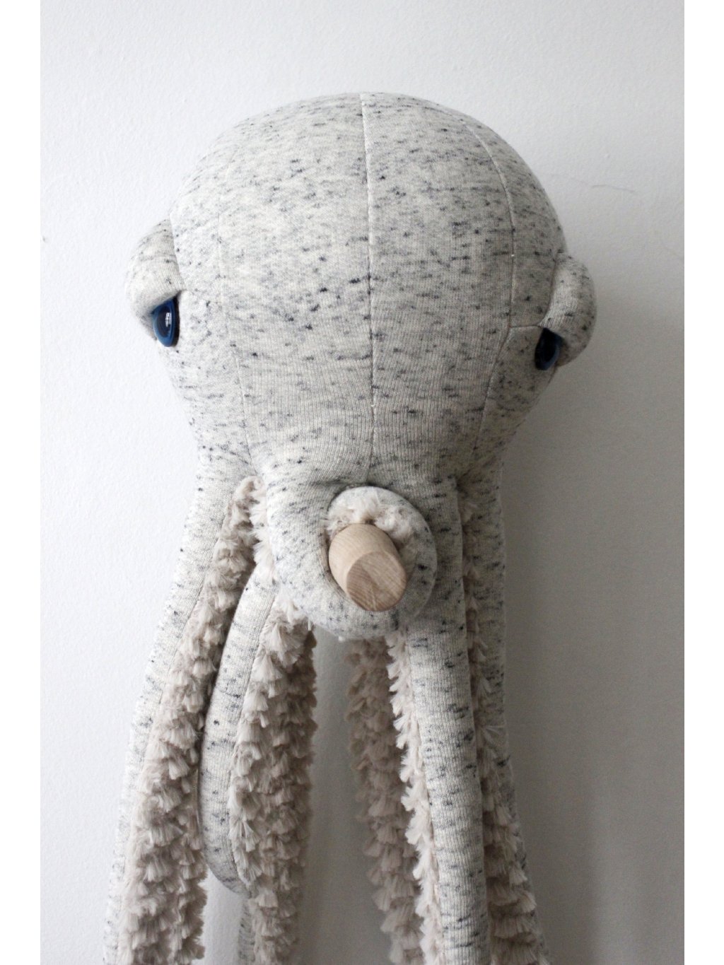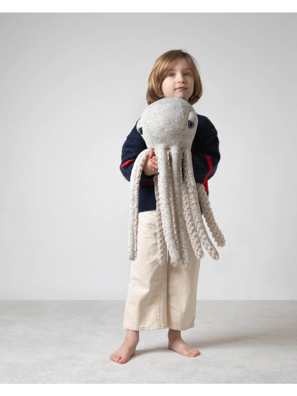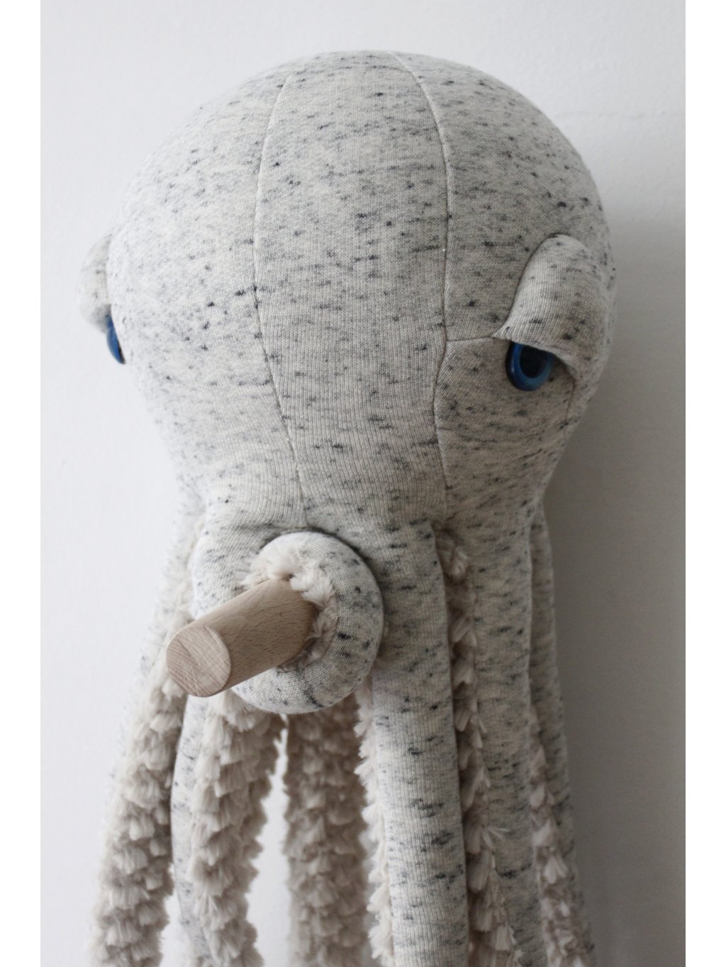 Tato ikonická chobotnice je ručně vyráběna s velkou péčí a důrazem na detail. Díky své velikosti 56 cm působí výrazně a stává se nejen oblíbeným plyšovým parťákem, ale i designovým prvkem interiéru. Děti ji mohou vzít na všechny své výpravy, zatímco její dlouhá chapadla přirozeně vybízejí k mazlení.