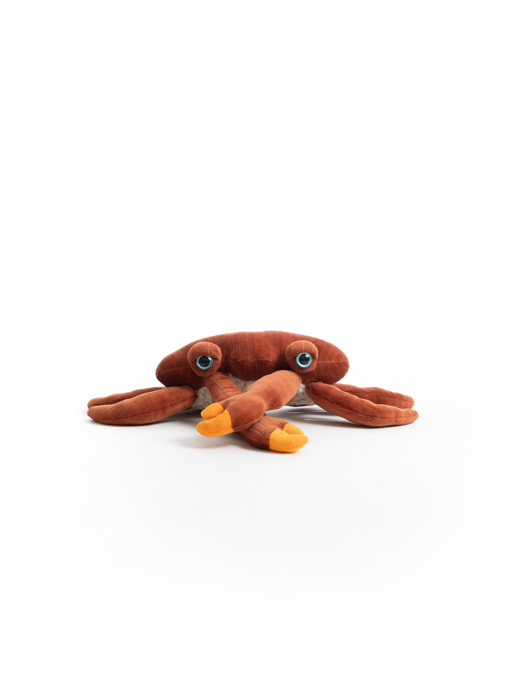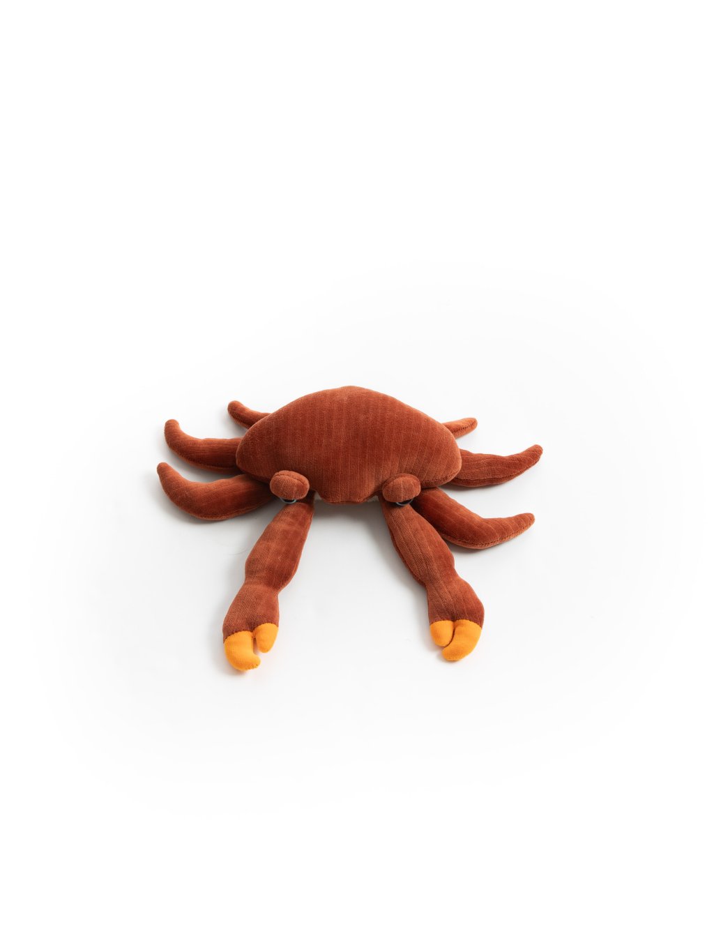 Výplň tvoří recyklovaná polyesterová vlákna, která dávají nový život plastu. Každá hračka je balena do znovupoužitelného textilního sáčku vyrobeného ve Francii. Tento krab tak spojuje hravost, eleganci a odpovědný přístup k výrobě.