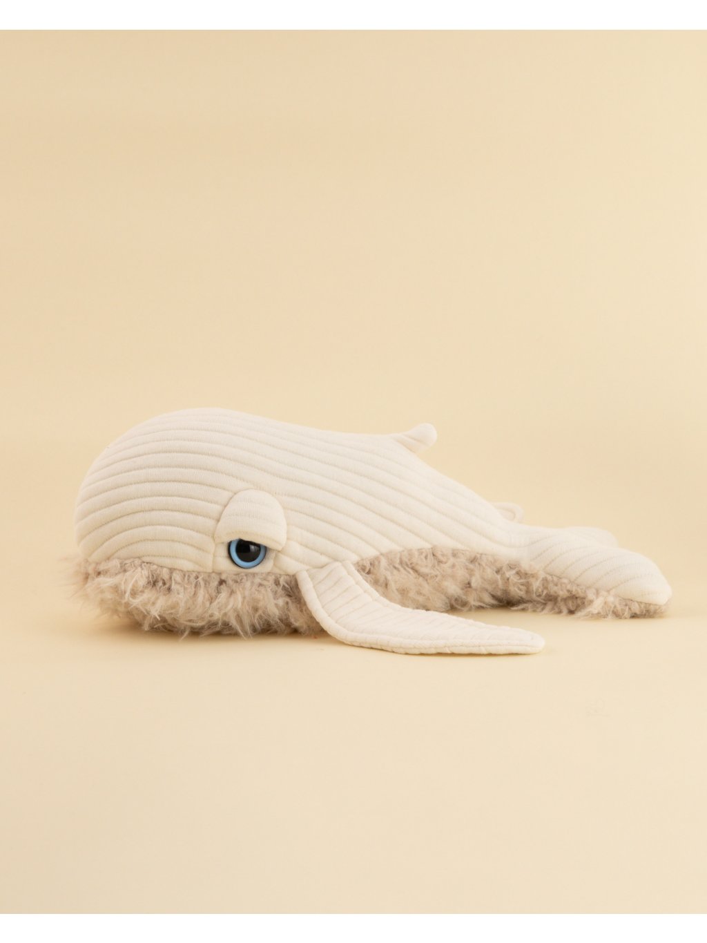 Výplň tvoří recyklovaná polyesterová vlákna, která dávají nový život plastu. BigStuffed klade důraz na kvalitu, dlouhou životnost a odpovědný přístup k výrobě. Mini velryba je tak nejen hebkým společníkem, ale i promyšleným designovým kouskem.