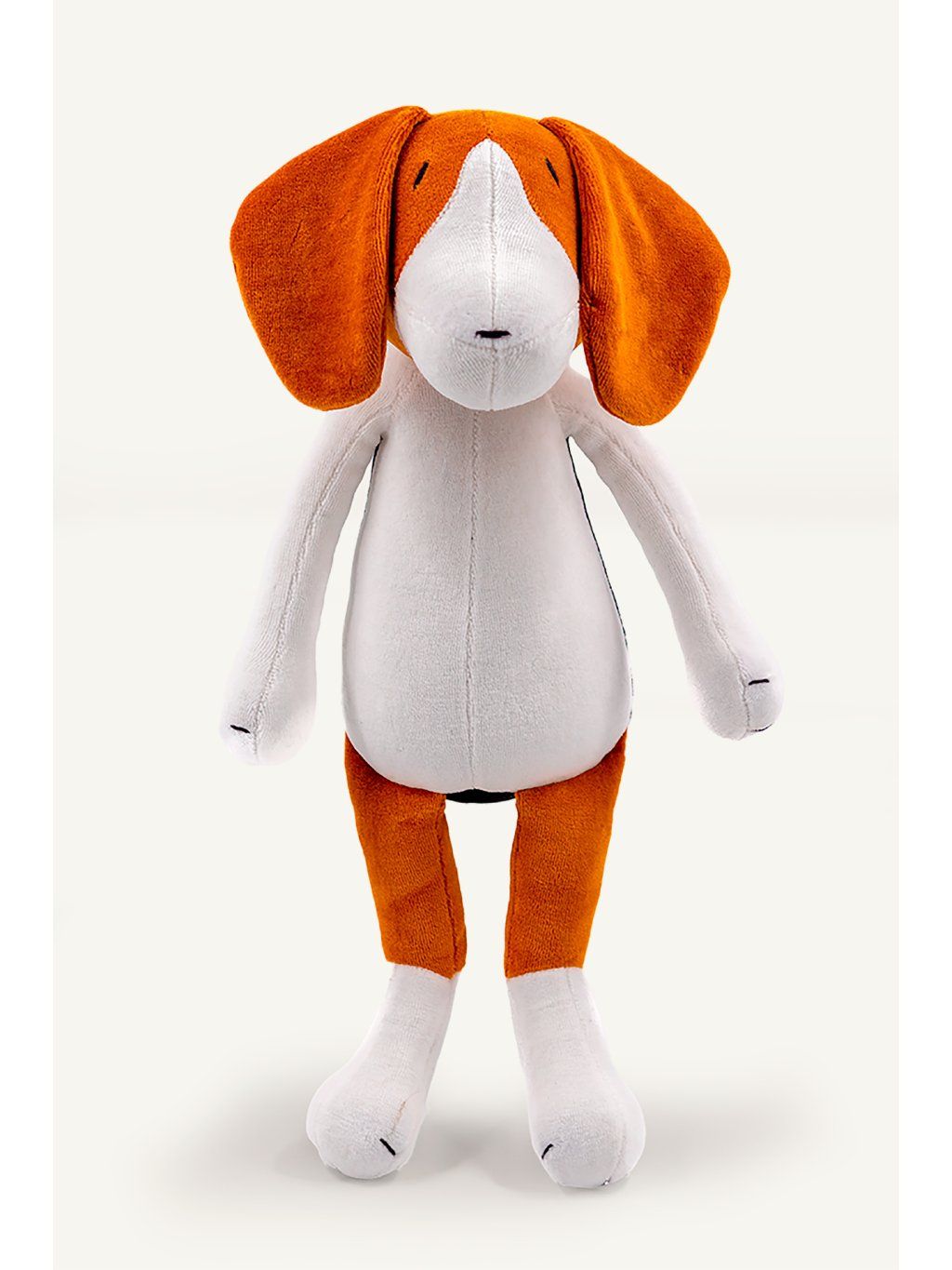 Je vyroben z jemné organické bavlny s certifikací GOTS, která je šetrná k citlivé dětské pokožce a splňuje vysoké nároky na bezpečnost. Každý detail je pečlivě zpracovaný. Obličej i tlapky zdobí ruční výšivka ze 100% bavlněné příze, která dodává pejskovi osobitý výraz a zajišťuje dlouhou životnost i při každodenním používání.