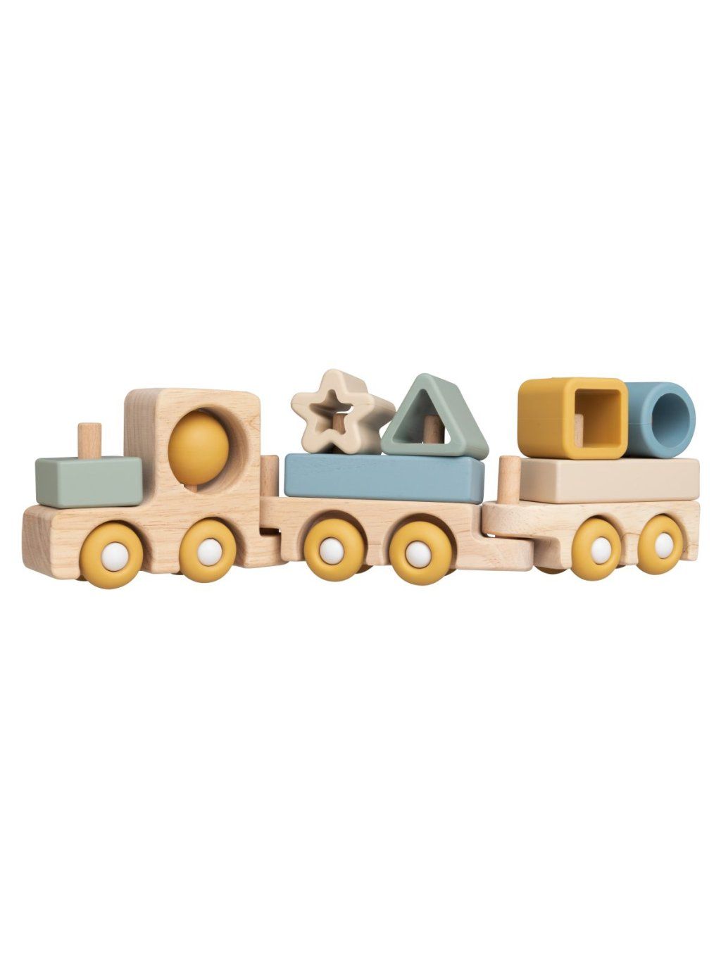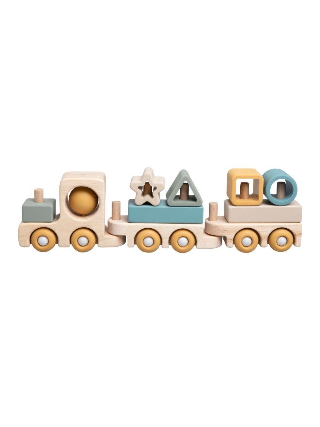 Vlak se skládá z lokomotivy a dvou vagónů, každý se sadou barevných kostek různých tvarů a velikostí. Děti mohou tyto kostky skládat na sebe, třídit je a popustit uzdu své fantazii, aby si poskládaly svůj vlastní vláček. Kostky jsou vyrobeny z vysoce kvalitního dřeva a mají živé barvy, které přitahují pozornost a povzbuzují děti ke hře. Hra s vláčkem pomáhá dětem rozvíjet jemnou motoriku, koordinaci ruka-oko a schopnost řešit problémy.