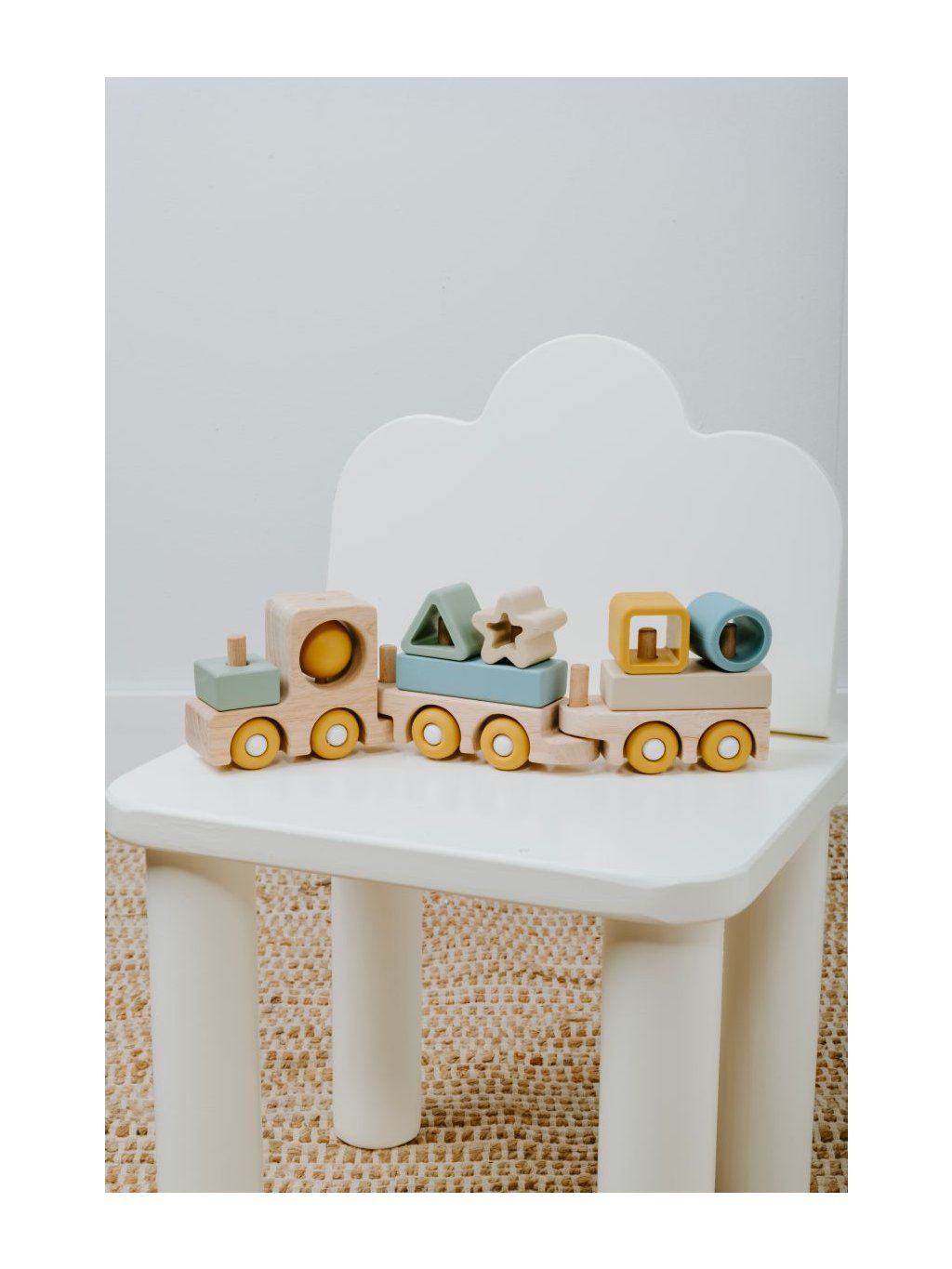 Tento vláček je nejen zábavná a vzdělávací hračka pro děti, ale také krásný doplněk do každého dětského pokoje. Vláček má nadčasový design a je vyroben z přírodních materiálů, aby se hodil do každého interiéru.