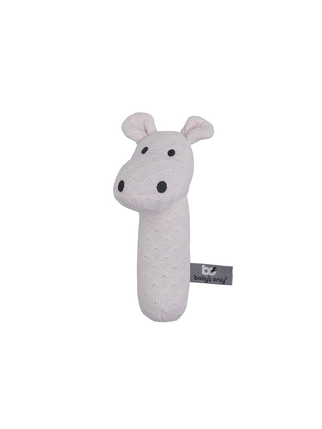 Toto pletené chrastítko Baby’s Only v klasické růžové barvě je navrženo tak, aby miminku nabídlo příjemnou a smyslově bohatou hru. Chrastítko ve tvaru hrošíka je vyrobeno z mimořádně hebkého úpletu, který se skvěle drží v malých ručičkách. Při pohybu vydává jemný, uklidňující zvuk, který podporuje sluchové vnímání a přirozenou zvídavost.