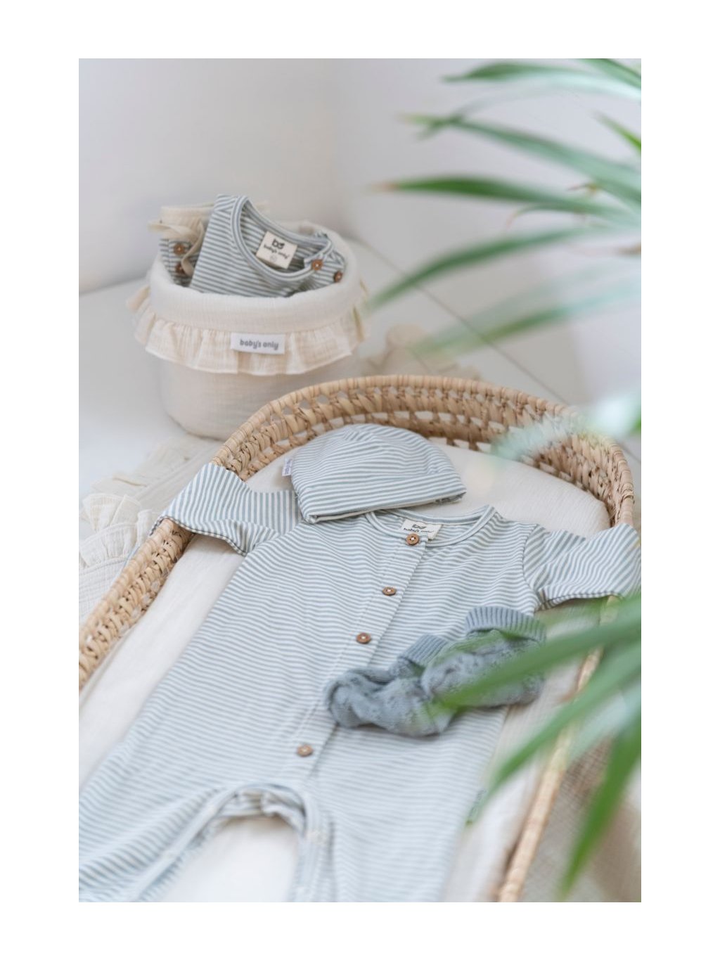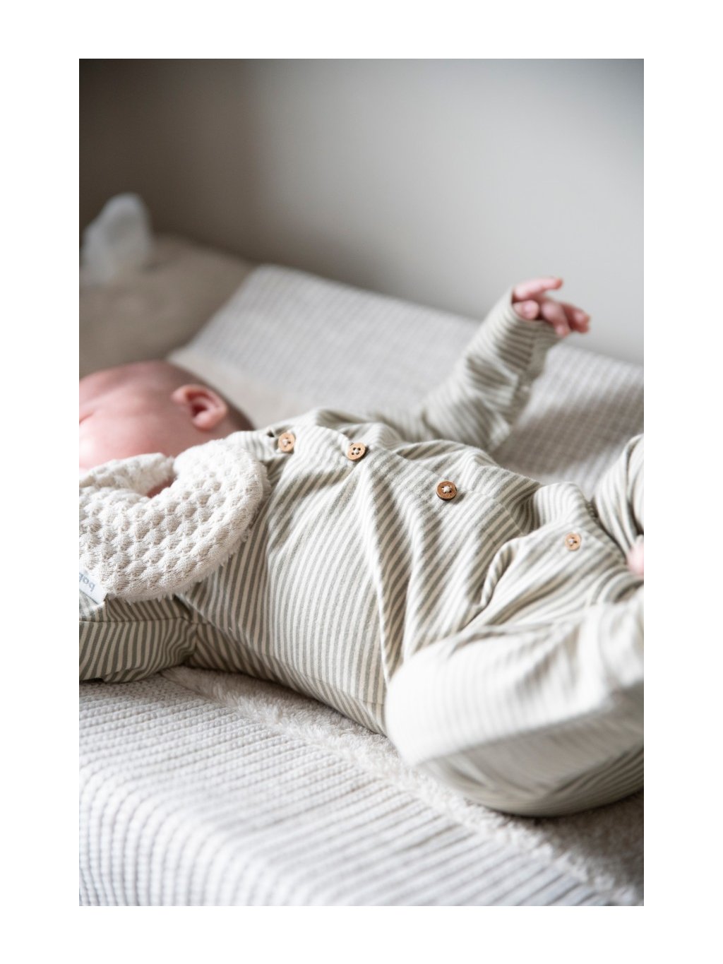 Elegantní proužky, jemné detaily a stylová nášivka na boku dělají z tohoto body víc než jen praktický kousek. Je to pohodlí a design v jednom, přesně tak, jak si to vaše miminko zaslouží.