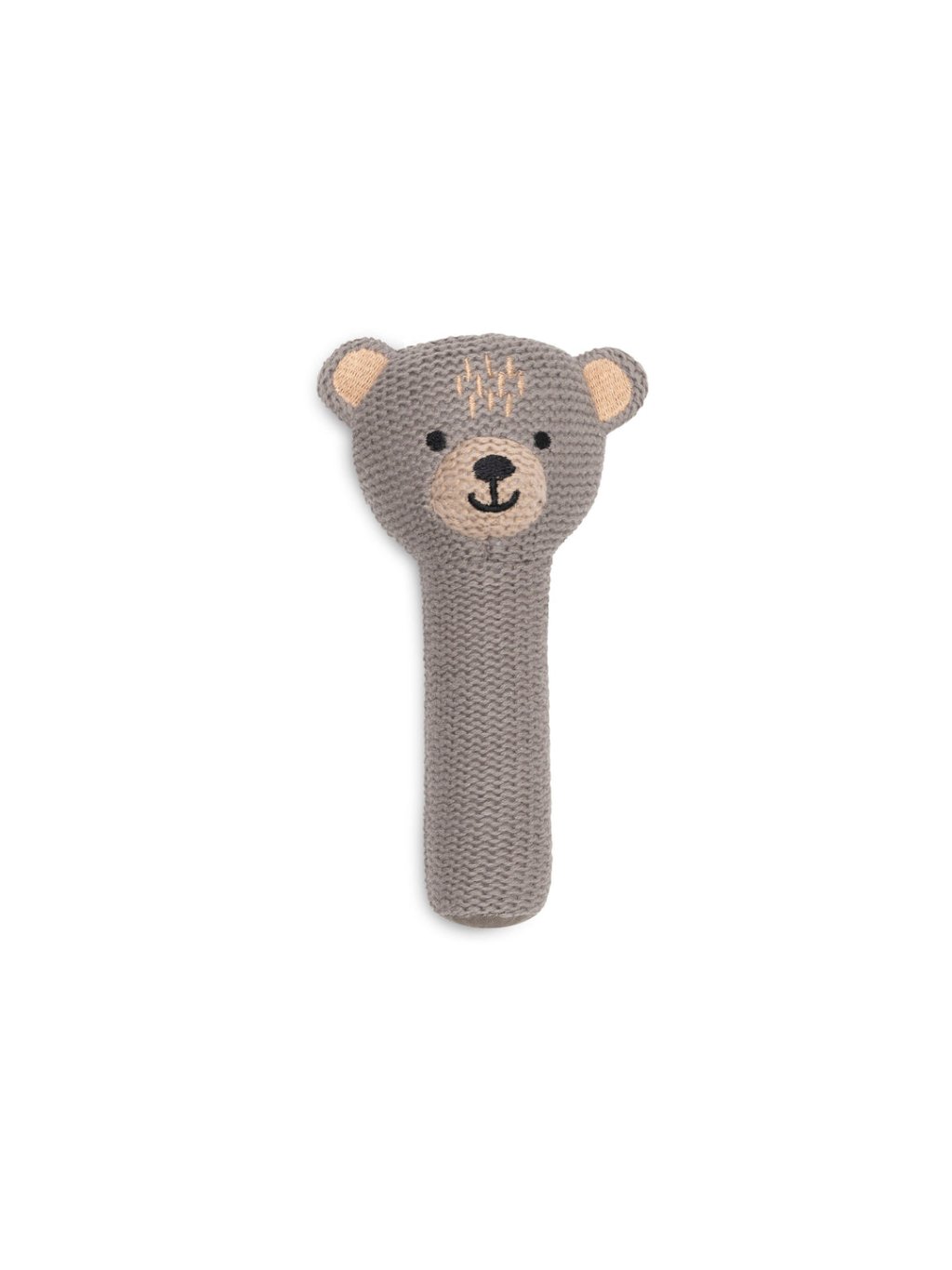 Chrastítko ve tvaru medvídka je vyrobeno z hebkého bavlněného materiálu a díky svému tvaru se snadno drží i v malých ručičkách. Při pohybu vydává jemný chrastivý zvuk, který zaujme a zabaví miminko.